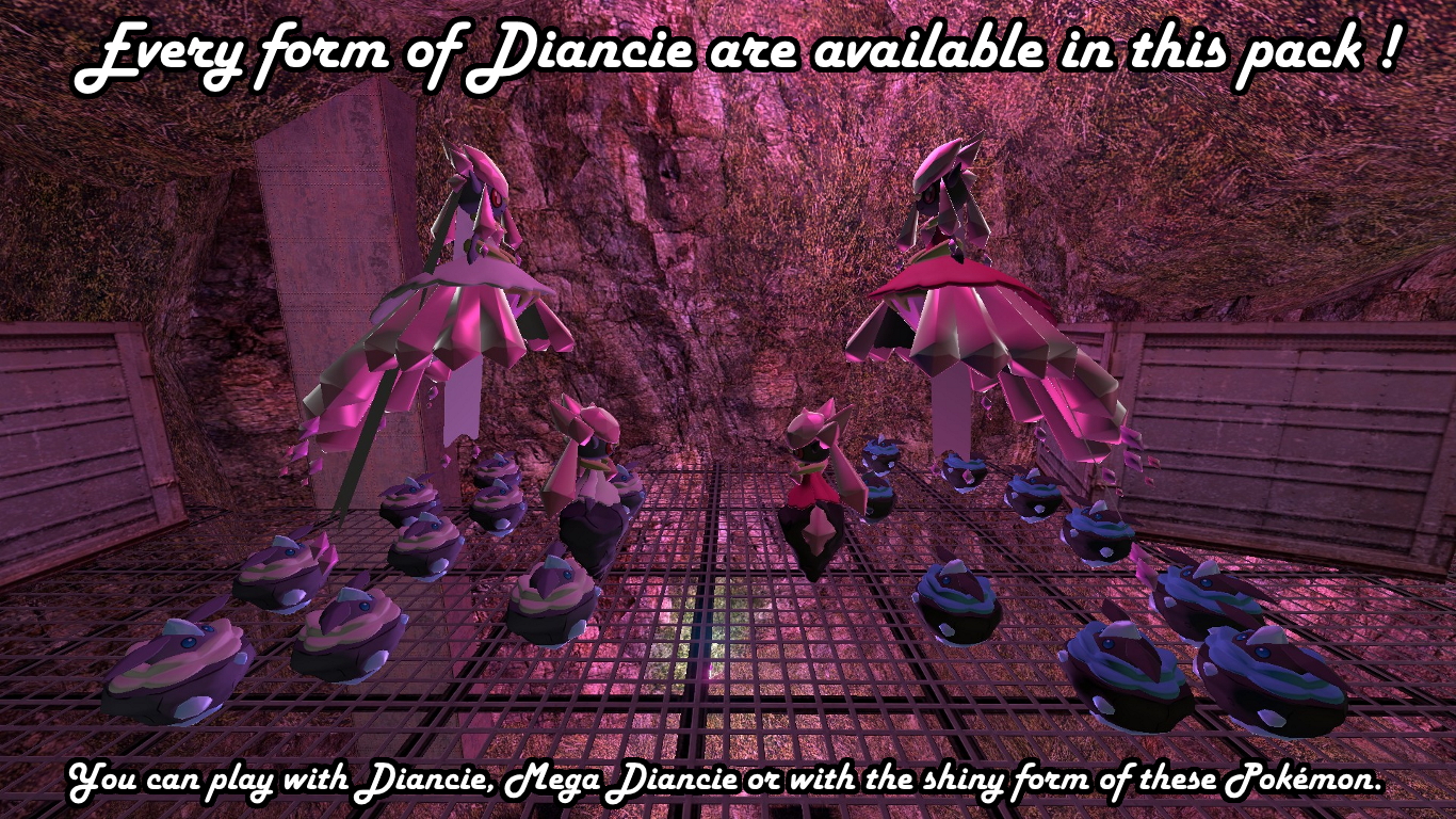• Play as Diancie, the Jewel Pokémon 💎, with a faithful playermodel true to its original design.