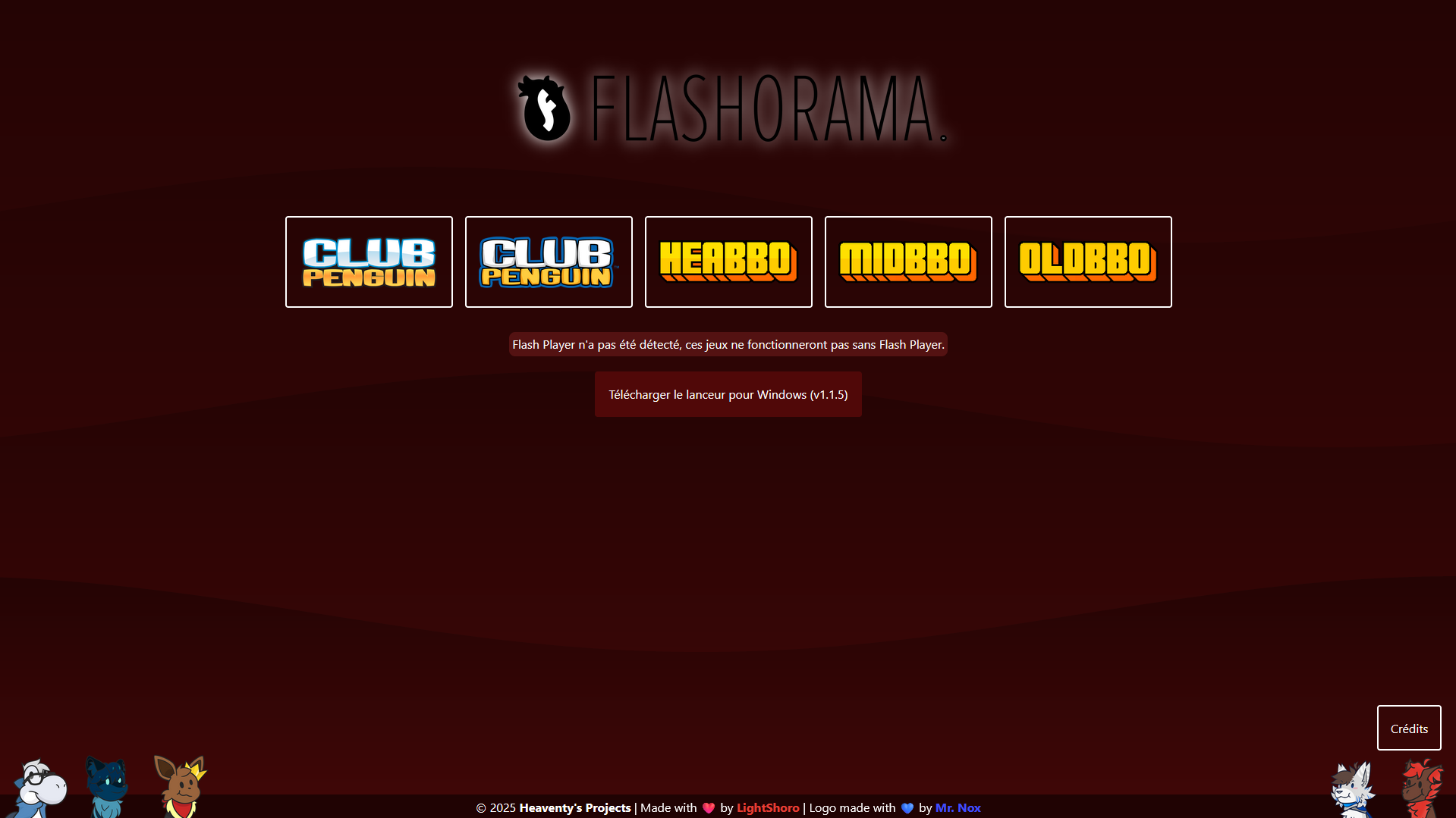 Welcome to Flashorama, an application developed in ElectronJS that allows you to play classic Flash games such as Club Penguin and Habbo from the "Heaventy's Projects" servers. This project aims to revive the nostalgia of Flash games by giving them a new life through a modern and easy-to-use interface.